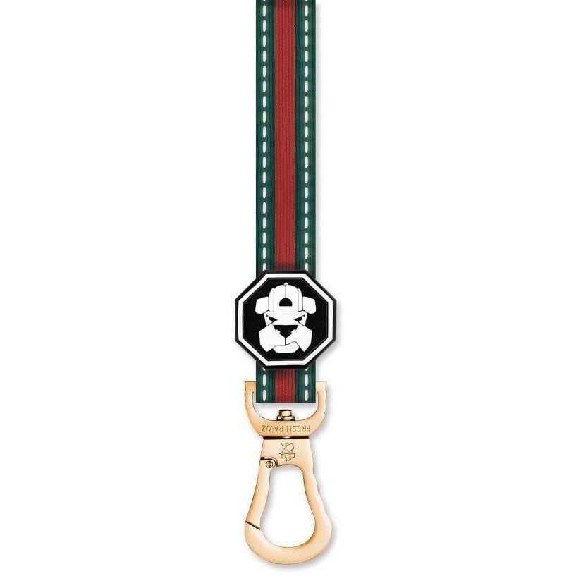 Complete the streetwear for dogs look with the this G-Stripe leash. Each leash creates a vibrant display of green and red to ensure your hypepet remains the envy of every dog at the park. Its polyester, padded handle, meanwhile, ensure comfort for handlers, and its heavy-duty hook provide maximum security and protection for you and your dog. gold accessories complete the luxurious look.